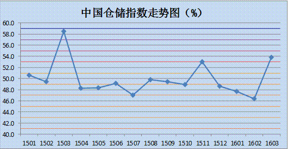 中國(guó)物流與采購(gòu)聯(lián)合會(huì)與中儲(chǔ)發(fā)展股份有限公司聯(lián)合調(diào)查的2016年3月中國(guó)倉(cāng)儲(chǔ)指數(shù)為53.8%,較上月大幅回升7.4個(gè)百分點(diǎn)。各分項(xiàng)指數(shù)中,收費(fèi)價(jià)格指數(shù)、期末庫(kù)存指數(shù)及業(yè)務(wù)活動(dòng)預(yù)期指數(shù)出現(xiàn)回落,其余指數(shù)均有不同程度的回升。